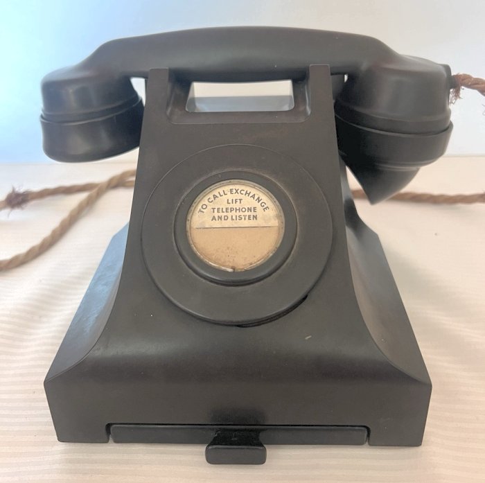 L.11568 Bakelite table table telephone for use on Automatic or CB Exchanges. This telephone has a tray. Maybe be labeled underneath with the ATE code number as well as the GPO telephone number. Diagram - L532619. L.11568.A1 - Black - Supplied to the BPO as their model Telephone No. 332CB Mark