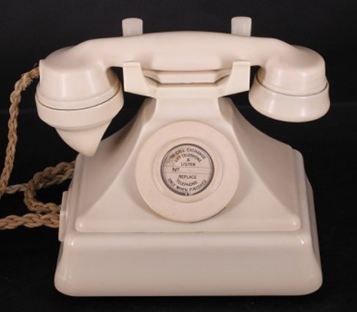 With the introduction of commercial Bakelite moulding, it became possible to do away with the more expensive metal cased and wooden phones. In 1929 Siemens in Britain introduced a new style of phone in which the whole case, cradle and handset were moulded from Bakelite. The new phone was called the Neophone and the British Post Office adopted a modified version of it as a standard model called the Telephone No. 162. In 1933 it was introduced in Australia as the Type 162, after two years testing. It became the standard desk phone. It had no bell or coil, so it was associated with a separate ringer box that held these parts. Since this was the same box that was used for candlestick phones, it made the Type 162 the logical replacement for these as they wore out. A bolt-on bellset was designed later to be attached under the phone by a short external cable that was subject to damage. Another problem was that the cradle was quite vulnerable to breakage. An extra rental was charged for the new handset phones. This was only discontinued in 1950. For a magneto version, a separate generator box was added as for the Type 36. The Type 162 could also be wall mounted on a simple metal bracket. The phone was available in black, red, green , ivory, and a mottled brown "walnut" finish that is rare and was not issued in Australia. All but the black proved prone to fading in Australia. An optional note tray was fitted into the base of some models. Extra rent was charged for the note tray and optional colours. Some British phones could also be ordered in a custom painted finish. One uncommon model is known, cast in aluminium and painted black. The use of a separate ringer box was acceptable when upgrading an existing installation, but the extra labour cost was a concern for new installations. A matching Bakelite ringer was designed that mounted under the phone, and made the Type 162 a completely self-contained unit. It connected to the phone by an external cable at the rear. It could be detached to make the phone portable if needed. This telephone was previously known as the Type 556. In Australia, the phones were made by Standard Telephones & Cables (STC), Amalgamated Wireless Australasia (AWA), and some probably by the Telephone Manufacturing Company (TMC) using imported parts.