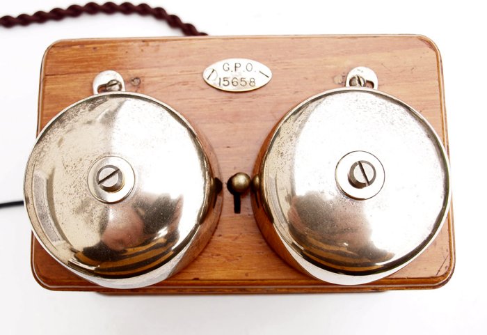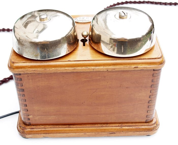 The GPO serial number is normally stamped on the rear and also marked on the front on an oval brass plate. This practice was later stopped when the GPO found it impracticable to document all the serial numbers. The lid is locked by means of a key. Bell resistance is 1000ohms. Superseded by the Bell No. 1. See Also Bell, Magneto 100ohms.