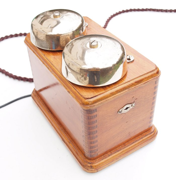 A wooden wall mounted bell, which was used as an extension bell or when a