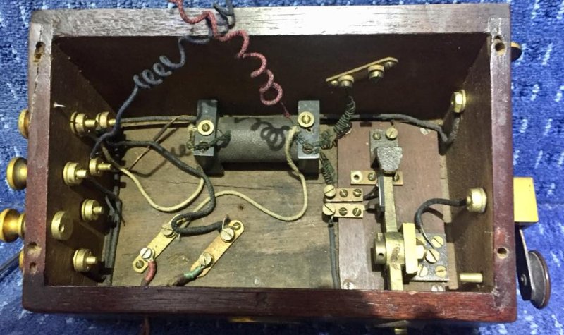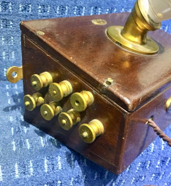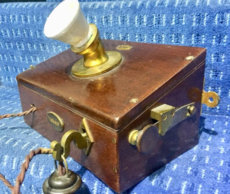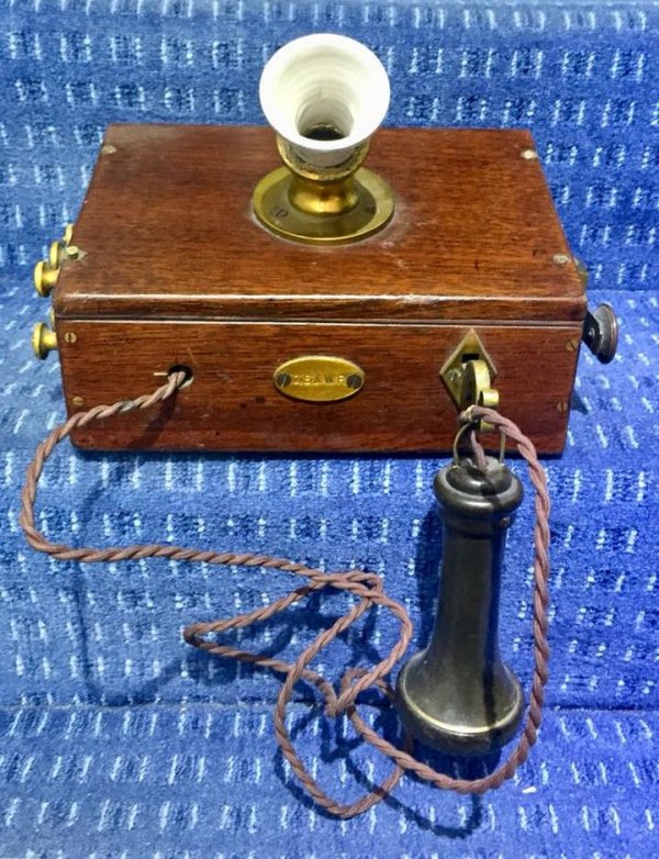 The telephone pictured below is marked GSAWR, which is probably the Great Southern and Western Railway (GS&WR) in Ireland (1844 - 1924). The fret work lid has been replaced by a solid cover, with a ceramic speaking tube and the receiver has been replaced by a Bell receiver.