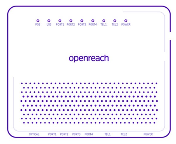 Huawei 4-port This modem has four ports and the Smart Hub is connected to PORT 1. The green optical cable would have been connected by your engineer. Do not unplug it. If the PON light is off and the LOS light is red or flashing, check that the cable's inserted fully into the modem. Contact BT if you're still having issues and:-