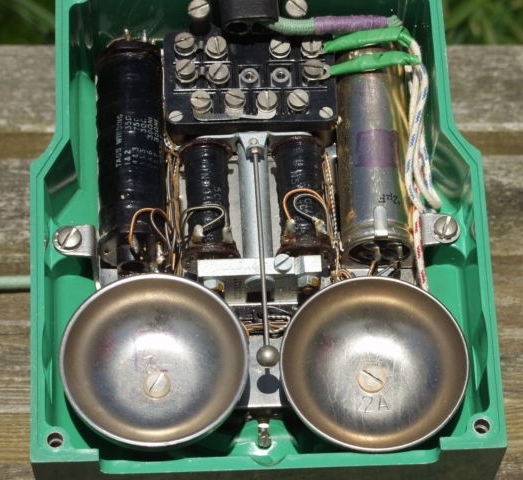 The interior apparatus including a magneto bell is mounted on a frame which can be