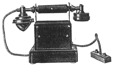 Table pattern telephone fitted with solid back long distance speaking transmitter, 1000ohm bell fitted to inside of base cover, 2mf capacitor, automatic switch hooks, flexible