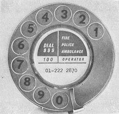 picture to the right shows a modern telephone dial. The numbers are in black on a