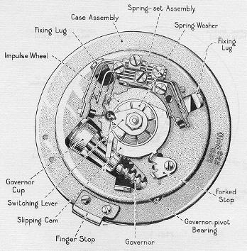The speed at which the finger plate returns to normal is controlled by a centrifugal governor. The governor is driven via a gear wheel on the main spindle and a