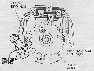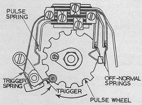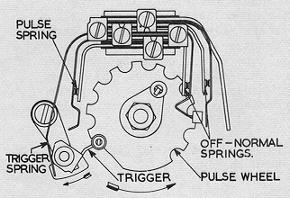 dialed. The size and shape of the pulse wheel and the tension of the buffer spring determine the pulse ratio. To guard against distortion of the trigger and to prevent trigger backlash, stops are provided which limit the movement of the lever carrying the