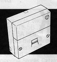 These jacks (shown above) were coloured light grey and had screw terminations. The socket outlet was on the side and not the top. The captive lid variant stopped removal of the telephone plug, which could only be released by removing the lid with the aid of a screwdriver. See picture below.