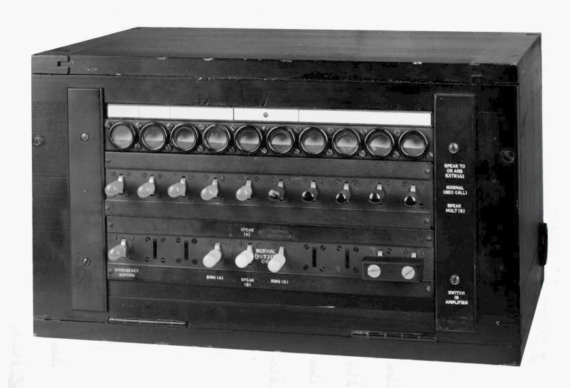 Switchboard, Multiphone AD1316 Introduced during WW2, there is no information on this unit but it was used for air defence work. Click here for apparatus made by the Post Office for the armed forces