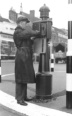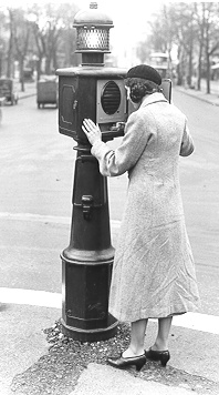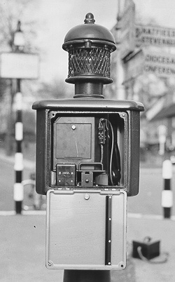 The Post P.A. No. 1 was a street pillar, introduced to the UK around 1933 and were used on the P.A. 101, 150, 150TD and 150MP schemes. They were made by Ericsson and would be part of a Police system that was installed around a Town. In the Police Station there would have been a switchboard, which was wired away to strategic street positions where the Posts were located. Phones could also be wired off these posts and they could be located inside nearby premises, say a Police office. The strategic street positions were on corners and in places were a person had a good view of the Police Post and where a Policeman could see the light flashing from a distance. The lantern lens was coloured amber. The Post is made of Cast Iron and had a triangular shaped head. The head has three doors:-