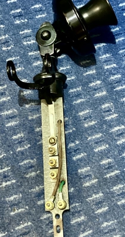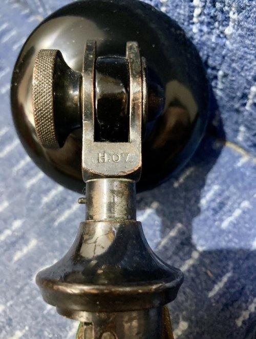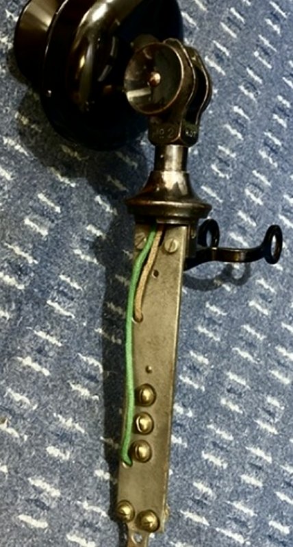 This telephone can also be connected to most of the standard GPO wooden wall telephones, which then allowed it share the wall telephones induction coil. Connections are the same as the Bellset No. 1. This telephone had all components finished in black. There were no transfers and all brass parts were painted. A hook could be fixed to the neck to support a Watch Receiver. The Transmitter No. 1 was replaced by the Transmitter No. 22 circa 1932. This gave superior transmission quality. The Rate Book of 1909 advises of a number of different variants:-