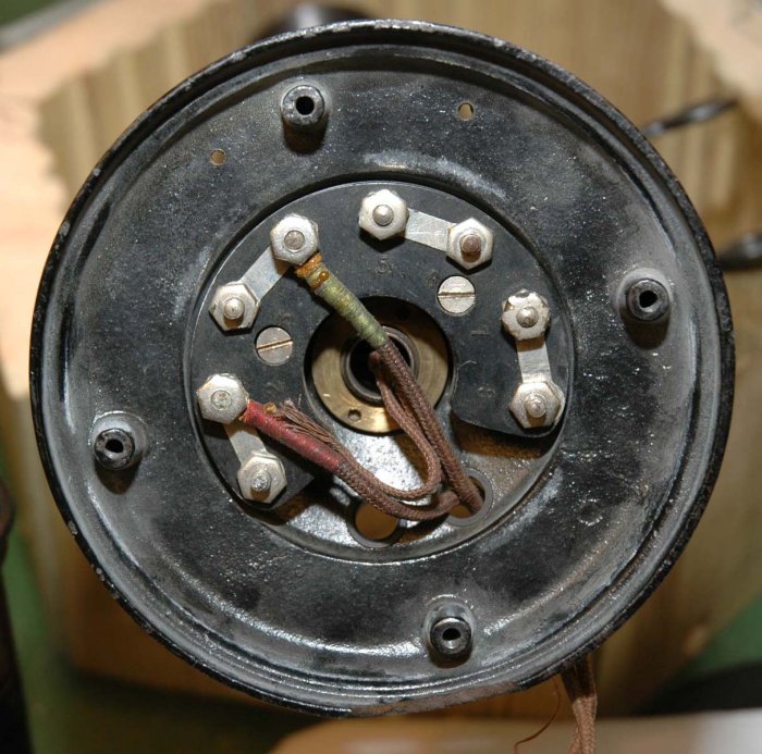 GPO Telephone No. 2 (Early version) Early documentation on the No. 2 is hard to find, but it appears that early versions of the No. 2 and No. 4 were available around 1904. It is thought that these early telephones were manufactured by BTMC, their Model No. 2600, and were based on the US Western Electric 20-S. The US WE 20-S is based on the US Western Electric No. 10 on which the Golfball was based. This version of the No. 2 and No. 4 appear in the GPO Red Diagram book and probably did not last a long time due to the introduction of the 1909 model and the Golfballs that remained in stock.. This was a much simplified design compared to the Golfball, but it did have an adjustable transmitter. The base was covered in felt and was fixed to the stem by means of two screws through the base plate. A third screw, in the centre of the base plate, secured the terminal plate and transmitter assembly.