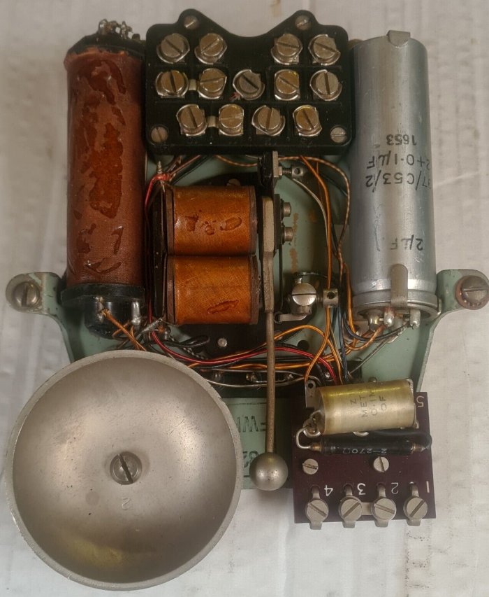 In place of the missing bell is an anti-sparking circuit for the