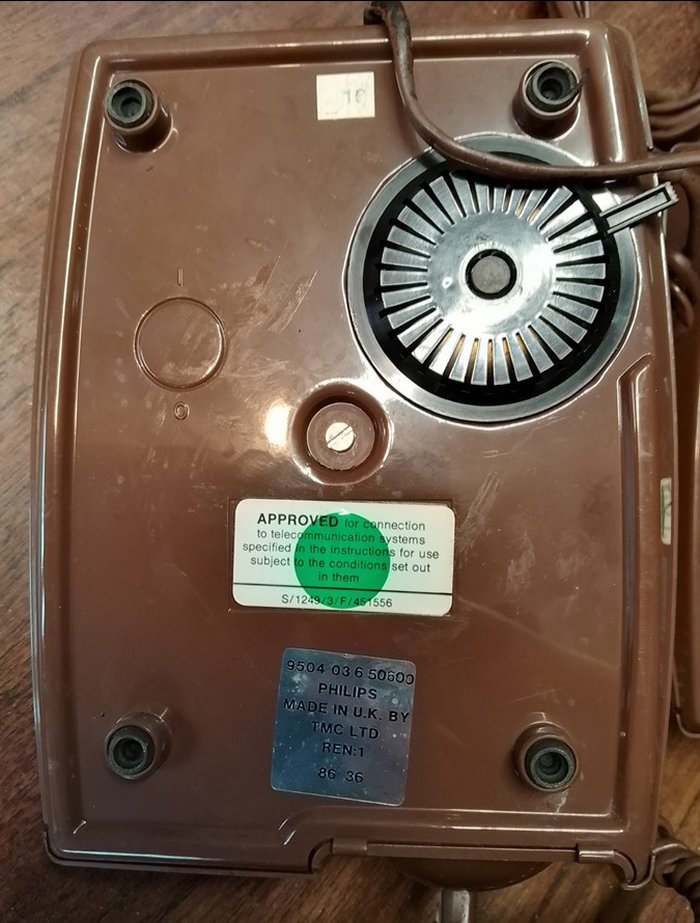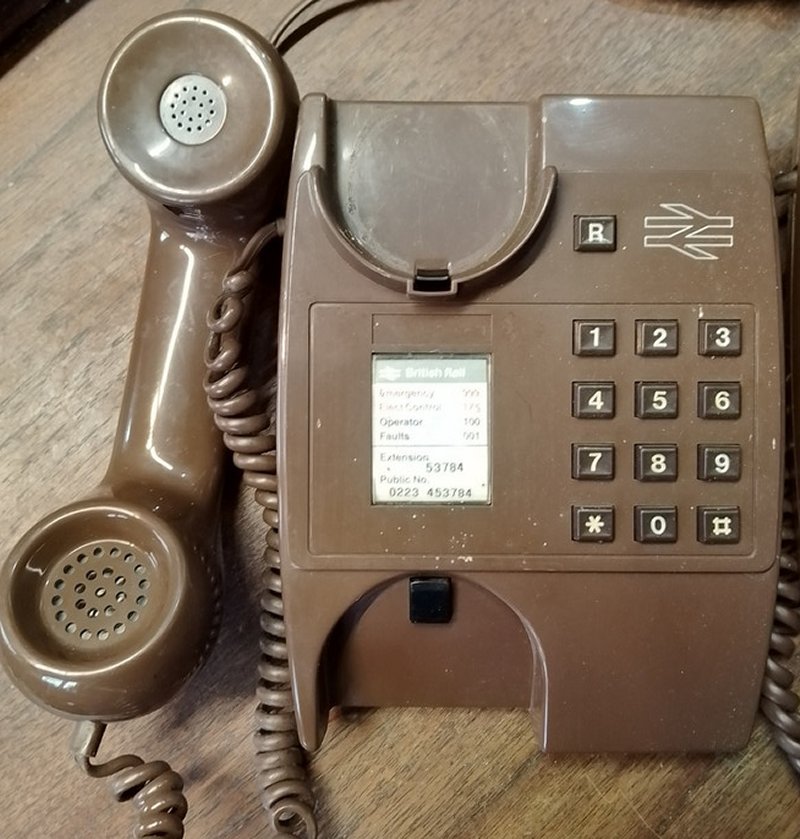 with tone (MF) dialling. Volume control on bell ringer and earth recall button. REN = 1. This phone has British Railways markings.