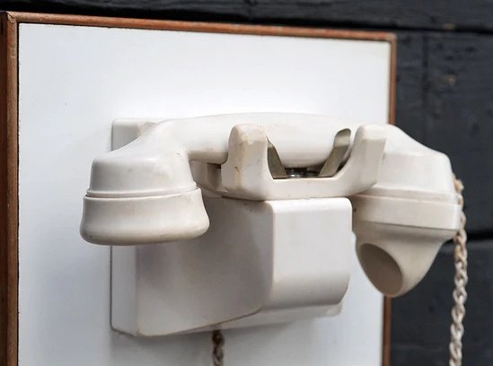 This is a wall mounted, single line, intercom telephone. They are fitted with a press button, switch hook, buzzer and terminal board. The terminal board is labelled A, B, C, D and 3. The handset is connected with a 2 way cord, which means it is fitted with an electrostatic receiver and is therefore the telephone is polarity concious. These were probably connected to a central switchboard, as they have no dial or buttons to communicate with other telephones. There is little information on these telephones but it appears that there were two types; a standard version and a ships version: the ship version having a metal handset retaining clip (see pictures below). Many of these were recovered from the RMS Windsor Castle when she was broken up and they are ivory in colour. A brochure shows these wall telephones fitted in Class cabins, with standard ivory Bakelite table phones for Deluxe cabins and no telephones in the Tourist class cabins. The RMS Windsor Castle was flagship of the Union Castle Line and built the Cammel Laird & Company. Launched in 1959, she made a total of 124 round voyages and carried around 270,000 passengers, steaming over 1.6 million nautical miles. The Royal Mail Ship Windsor Castle of 1959 was the largest passenger and cargo mail ship operated by the Union-Castle Line on their ‘Cape Mail’ service to South African ports. The new vessel was notable for the high standard and design of her public rooms in a “traditional” first class and “contemporary” tourist class configuration, which afforded both classes public rooms and deck space facing forward. The spacious passenger lounges and dining rooms were designed by eminent British architects. RMS Windsor Castle was air-conditioned throughout the passenger and crew areas. 1977 was the final year of the Union Castle mail ship run from Britain to South Africa.