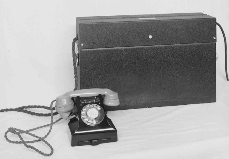 These telephones were generally built up, when required, using a Telephone No. 328 Black and a Telephone No. 164 Green. The green handset was a to allow easy identification of the secure phone. The telephone had provision for three press button keys. Normally the middle button would be left blank and only used if recall facilities or a ring button were required. The left button was originally labelled "Secret", which later changed to "Scramble" and the right button labelled "Normal". The newly introduced Receiver Inset No. 2P was also specified for these telephones as the reception quality was considerably better than the Receiver Inset No 1L. The Receiver Inset No. 2P also used the newly introduced Earpiece No. 23 and due to war time shortages black earpieces were used when green was not available. When green handsets were not available the GPO Factory would paint the handsets a Lime Green colour. Factory modified sets would have been marked SA 5030 but those built in the field would have retained the original Telephone No. 328 markings on the base and chassis. Visit the Crypto Museum for more information Introduced in 1940. Circuit diagram - SA 5030. Installation Instructions