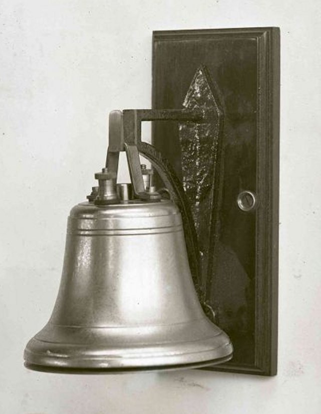 Bell with a coil resistance of 100 ohm. 4 inch, Church style gong, with electromagnet trembler mechanism fitted inside gong. Requires a "bracket Suspension". Used as a house bell for fire stations. Superseded by Bell No. 40A. Click here for the difference between a Bell and a Bellset