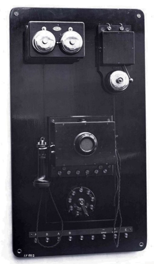 The GPO serial number is normally stamped on the rear and also marked on the front on an oval brass plate. This practice was later stopped when the GPO found it impracticable to document all the serial numbers. The lid is locked by means of a key. Bell resistance is 1000ohms. Superseded by the Bell No. 1. See Also Bell, Magneto 100ohms.