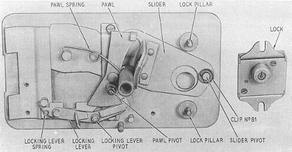 (ii) Pawl pivot nut - early models where single nut and locking washer fixing employed.