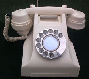 The two telephones above look like reproductions. The dial finger stop should be next to the 0. The left hand phone has a white press button above the dial - these were always chrome. In front of the button there would have been a label explaining the function of the button (i.e. Recall), this label would be fixed to the case by two screws - can you see the screw holes - I can't. The right hand phone has the wrong dial.