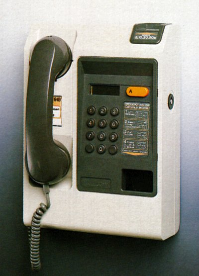 plastic cased, wall-mounted payphone which can be plugged into an ordinary