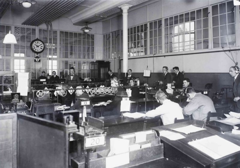 The above is an extract from the April, 1921, issue of this Journal and records what was really the beginning of the point-to-point radio services now controlled from the C.T.O. This service was carried on in a small room on the 4th Floor of G.P.O. West. The Stonehaven radio transmitter controlled by landline from this room was used as the transmitting station on the British side, while Germany utilised its station at Konigswursterhausen. In 1922 an additional service was opened between London and Rome, the Northolt arc transmitter being used for this purpose and controlled from the same room. This room was now being used to its fullest capacity and it became apparent that to develop these services and also to allow for future extensions additional accommodation would have to be provided. In September, 1922, therefore, these two services were transferred to a larger room which had been built on the roof of the same building. Here better accommodation was available for the existing services and provision made for additional apparatus. Improved leading-in facilities for the increasing number of aerials required was also provided. During the whole of this period the radio services had to be carried on under two very serious handicaps. In the first place the isolating of these services from cable services dealing with similar traffic, gave rise to difficulty in keeping both services supplied with traffic and, at the same time, equalising the delay. Secondly, and from the technical side more important, the receiving conditions leave very much to be desired. Owing to the proximity of the aerials and the radio receiving apparatus to the C.T.O. and other sources of electrical disturbance common to large towns, comparatively strong signals only can be received and high speed recording cannot be undertaken to the same extent would be possible under more ideal conditions of reception. In addition, owing to the location of the receiving