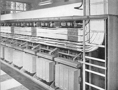 All the switching equipment racks are of standard size, i.e. 7 feet 9 inches high and 4 feet 6 inches wide. A departure from normal practice was made in using bus bars instead of cables for power distribution, whilst the rack lighting equipment which for
