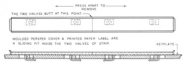 The paper designation strip below the indicators is protected by a moulded transparent window held in a metal frame. As shown in Fig. 10, the frame is in two halves which can be separated to release the spring clips securing the designation strip to the key plate.