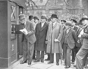F. J. Crawley, Esq., Chief Constable of Newcastle-on-Tyne, pioneer of police box organisation, was present as an honoured guest, and unstinted acknowledgement of the help and advice he had afforded in the development of the scheme in Edinburgh was voiced by the Chief Constable of Edinburgh, and suitably acclaimed by the assembled