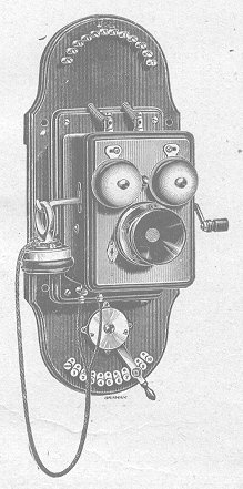 MAGNETO CALL INTERCOMMUNICATION TELEPHONEWALL PATTERN Comprising a 'Hunningscone-Deckert' Transmitter, with Ebonite Mouthpiece, Induction Coil, Double-pole 'Ring' Receiver and Flexible Cord, Two-magnet Generator, Polarized Call Bell, Automatic Switch Hook, and Step-by-Step improved Line Selector. Woodwork of solid well seasoned Polished Walnut, and all exterior metal parts Nickel-plated. Can be supplied with 5 lines, 10 line, 15 lines, 20 lines, 25 lines or 30