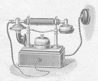 K8155 CENTRAL BATTERY TELEPHONETABLE PATTERN Comprising a Central Battery Type of Hand Microtelephone, Single Gong Polarized Bell, Automatic Cradle Switch, Two microfarad Condenser, Two-conductor Flexible Connecting Cord, and Wall Rosette with Terminals. Woodwork of solid Polished Walnut, and all exterior metal parts Nickel-plated. Price in 1908 was £3.9.6 |