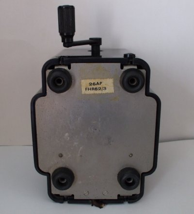The AP suffix designating the variation. The case is made of Bakelite and is fixed to the base by 4 large headed screws. These screws are placed in the side of the case to allow the generator to be screwed to a desk or shelf. This Generator has a capacitor which is located under the generator. The case is removed by loosening the 4 screws on the sides of the case and removing the handle. The handle is removed by turning, sharply, anticlockwise. ETL Part number N8486A2.