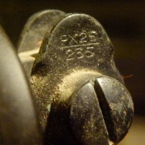 Originally, Candlesticks had no dial aperture, as there were no automatic exchanges, but later models (i.e. the Telephone No. 150) did have an aperture in which either a dummy dial plate or a dial was fitted. In the UK the dials fitted to GPO Candlesticks were the Dial, Automatic No. 10 or the Dial, Automatic No. 12. They are clearly marked under the dial rim and are also dated. GPO dials always have the finger stop located next to the "0". Later Candlesticks were mainly produced in the GPO repair factory by using parts from the older style Candlesticks (i.e. No. 2's were made into No. 150's). Obviously the non-dial body was discarded and replaced by one with a dial aperture. In most cases the original transmitter support was utilised and this can be identified by a crossed out number (i.e. No. 2) on the head and the number 150 inserted next to the 2. This is quite normal. The picture, above right, shows a head marked PX25. PX is the manufacturers mark and 25 is the year. The 235 is a "mark" number, which is of no real significance. The number "2" or "150" will be found on the other side of the head.