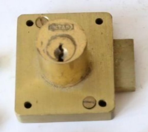 Brass cylinder lock with dead bolt for use on the police doors of Posts, P.A. No. 1.