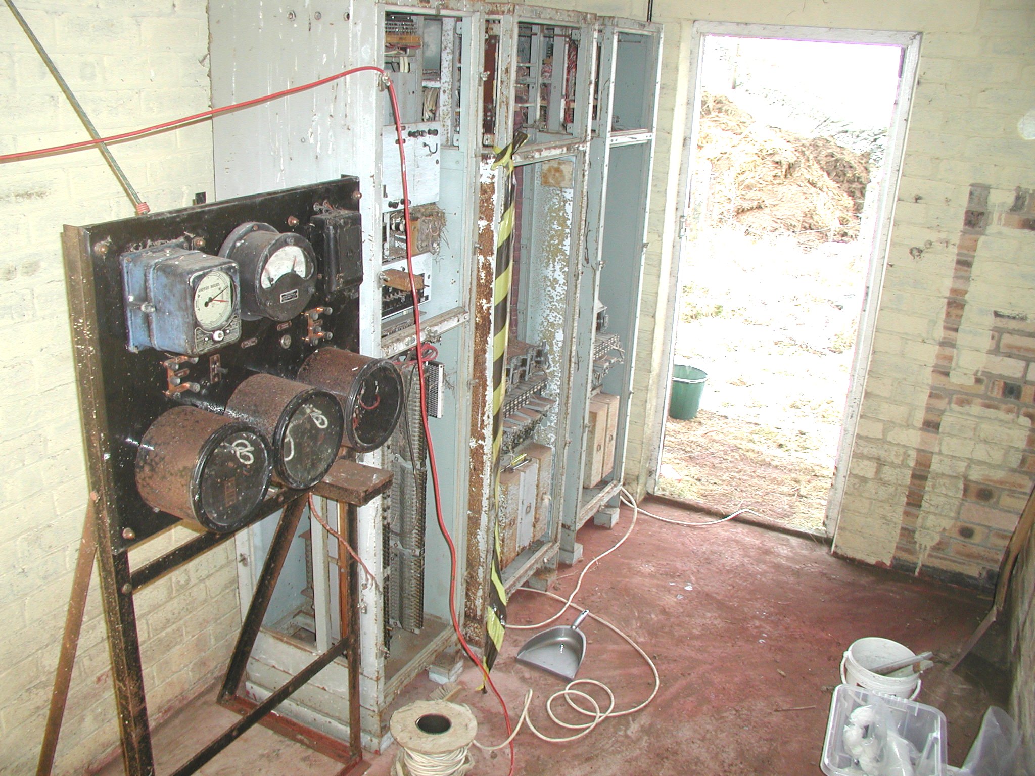 So the last day as we were due to go home, I had to drive all the 20 miles to Forfar to find a builders merchant that could sell me a sheet of one inch plywood, and then come all the way back again. My idea was to tidy it up and then board it up securely until I could come back for the equipment. Bearing in mind that we were supposed to drive back home as far as Darlington for that night, time was short. I started to clear the floor and sort out the better cells from the rubbish. I managed to get the power panel upright again but at this point I felt doubts setting in and decided it was time to run. In fact I had begun to think maybe it was better that I didn’t get involved with this and it might be best to forget it. I boarded it up very securely, so that I was sure no one would get in easily, and left for home.