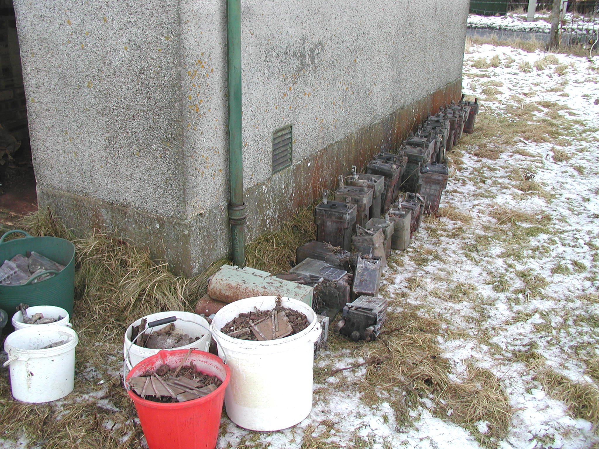 An interesting evening was spent over supper in the Thrums pouring over the drawings of the charging panel, trying to understand why it was so complicated and getting to grips with how it works, and why so many jam-jar sized mercury switches were needed. I think the mercury weighed more than the rest of the panel! We had wondered why there were a few cells smaller than the rest, until we realised that these would have been the Counter EMF cells for reducing the battery voltage applied to the exchange, when charging the cells. One other thing which was on the back of our minds was the real problem of what to do with the rubbish. It had to go. The local tips might charge or refuse to take such a lot of waste. In any case, I wanted to find a scrap dealer that might take the batteries and scrap metal. A previous call made earlier in the day, to the only dealer we knew this side of Dundee, raised doubt since he really didn’t know what the hell we were talking about. He had only ever heard of car batteries, which they didn’t process. Our cells were easy to break up, and had no acid to deal with.