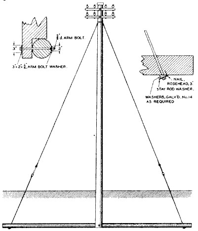 FIG. 7 - "END-ON" METHOD OF ERECTING HEAVY POLES 38. The following points should be borne in mind in connexion with the erection of heavy poles:-