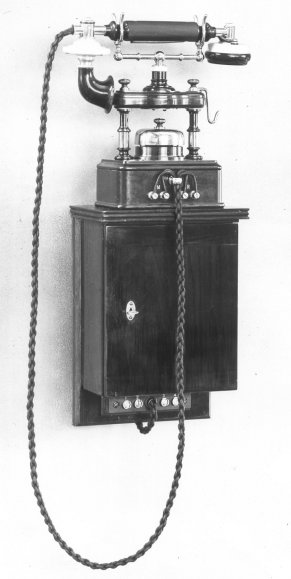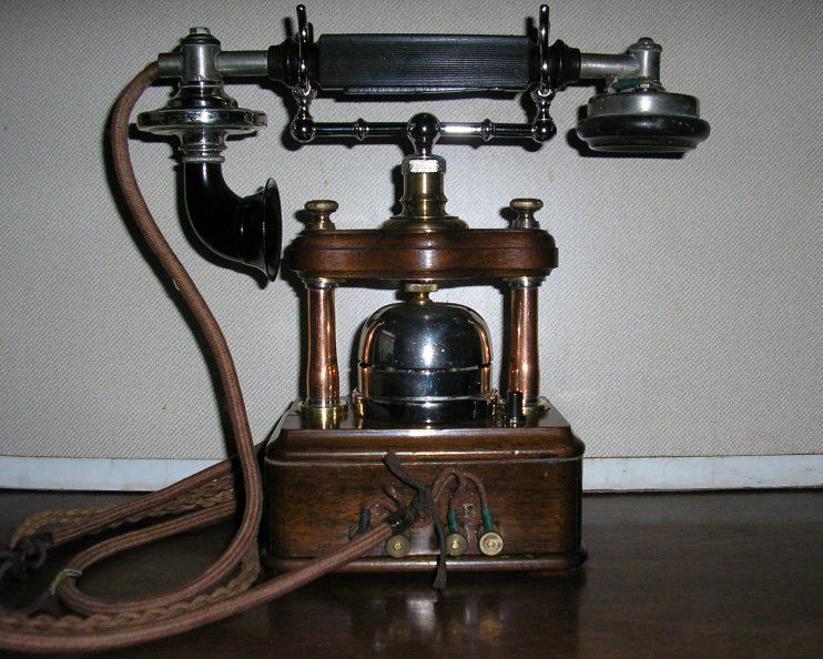 Originally known as the "Table Telephone, with Magneto Bell" but was renamed as the Telephone No. 26 circa 1911.. This instrument was intended for use on telephone exchange systems where the subscriber is called by generator and the telephone calls the exchange on the permanent current system. It was later used on C.B.S. Exchanges. The hook on the right hand side of the telephone is for a Watch Receiver, if fitted. Probably introduced as a table telephone to replace the Gower-Bell wall telephones. The batteries are housed separately and a battery box is shown in the picture to the left with the telephone sitting on top. Early versions of this telephone had a Magneto double-coil bell motor