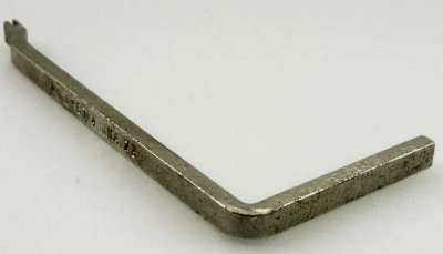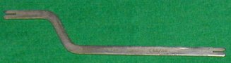 Consists of a thin strip of steel cranked at one end and having slots cut along the length at each end. Overall length