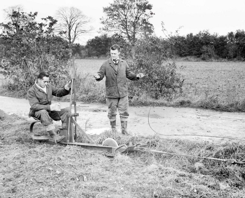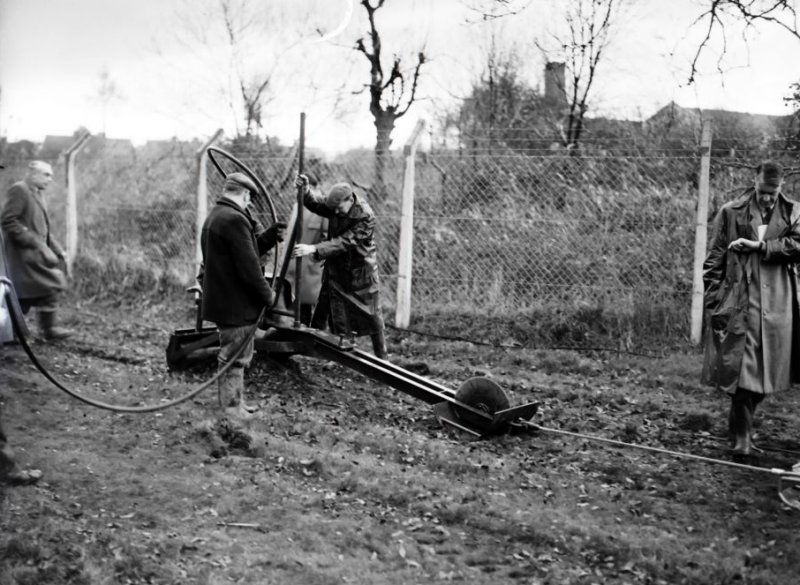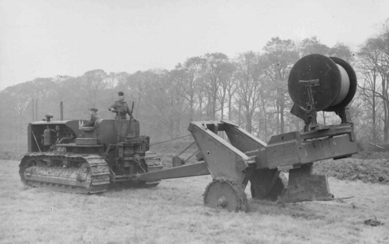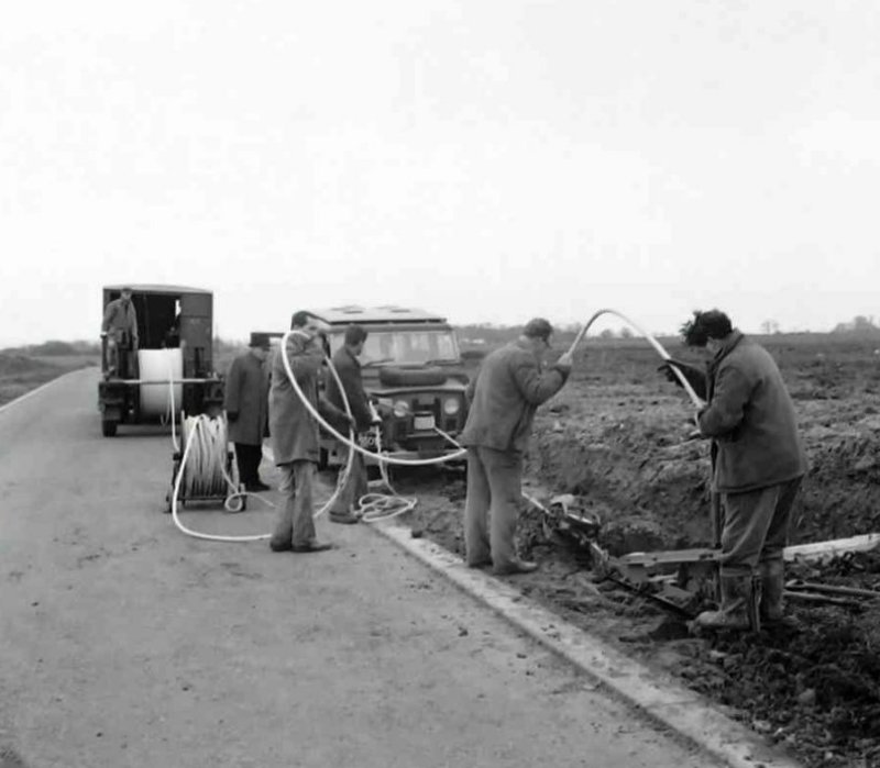 Moleploughs are used to lay cables of small diameter and small gauge duct directly into the ground. Moleploughs used to be standalone mechanical devices that were pulled by a tractor or tracked vehicle. The Post Office also used Landrovers, with winches, to pull moleploughs from the 1960's onwards. The mole consists of a ploughing blade that is pulled through the ground, cutting a channel of the required width and depth. A box chute or tube is attached to the ploughing blade which enable the cables to be laid directly into the channel along with the earth surround. Due to the narrowness of the channel the ground closes in after the box has passed, thus covering the cable or duct. Today we have moleploughing machines that are effectively tractors with the plough attached and a drum on the back for the cable or duct. The following documents expand on Moleploughing:- Moleploughing Cable and Duct - 1970 Moleploughing Cable and Duct - 1975 Moleploughing and Machine Trenching - 1983
