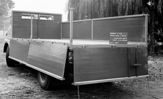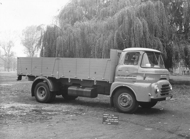 Dropside truck dating from 1962 and used by the Supplies Division. The unusual high sides of the body imply that the body was designed to carry specific light but bulky items rather than general stores.