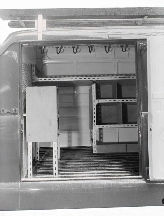 This looks like a prototype one man installers or utility vehicle. Note the Dexion racking.