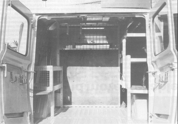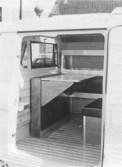 (AP/GP) A revised design of the Area Planning and General Purpose vehicle will he introduced during 1978, based on the 15 cwt Stores Carrying type of vehicle, with a three-seat cab, a cab bulkhead and a side door to the body. The design is based on the requirements of its primary users - Area Planning and Survey Parties, Housing Estate Liaison Officers (HELO) and Precision Testing Officers (PTOs). A second bulkhead halves the body area into a forward "office", and a stores and plant area at the rear. This bulkhead can be removed to facilitate full access to the interior as in PTO usage. Full length three tier shelving is fitted to the offside, and the uppermost shelf is hinged to allow larger items to be stowed on the second tier. Plastic stowage pipes for Hoses No. 2A are located within and above this shelving. Two short shelves and a tool board for manhole cover lifting keys straddle the nearside rear wheel arch. The rear doors are panelled and fitted with brackets to accept box keys. The "office'" is fitted with a folding table and print bins against the cab headbulk, a storage box with an upholstered lid to provide seating, and a Propane Gas and Stoves Propane stowage point. THE STOVE MUST NOT BE USED INSIDE THE VEHICLE. Illumination is provided by a roof light and fluorescent fitting. A TI will be issued in due course with a recommended layout for users and an early modification will be the availability of a Duct No 56 roof stowage arrangement for HELO duties. The photographs feature a pre-production model.
