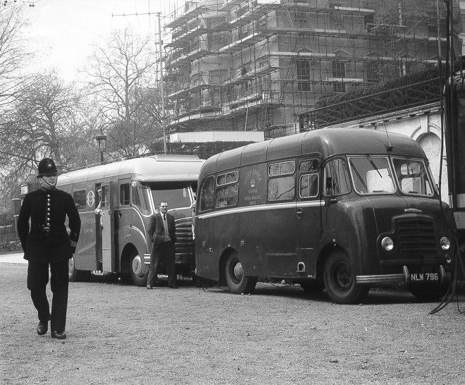 The picture below shows the Coronation mobile television repeater van outside Buckingham Palace, London (1953)